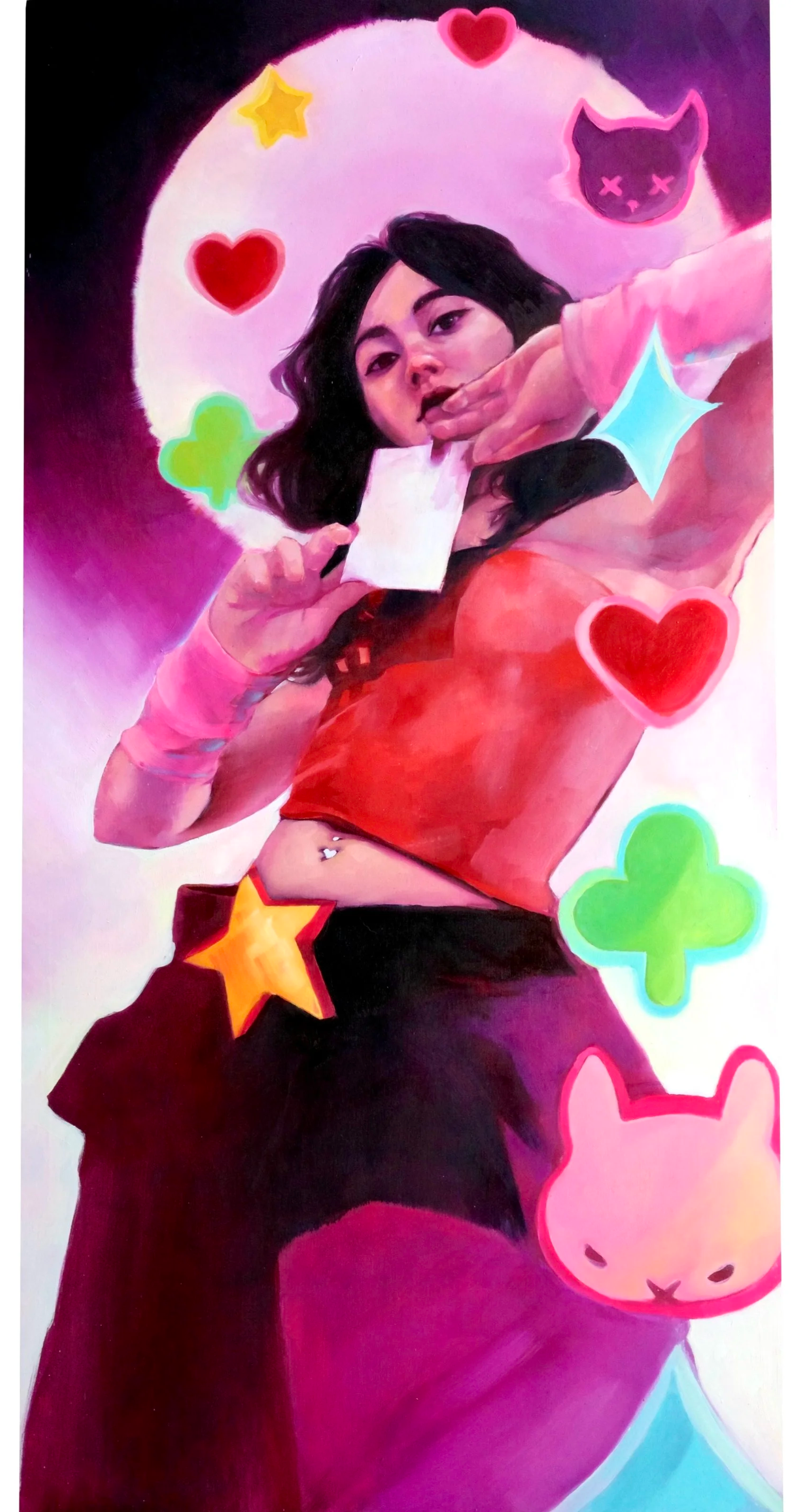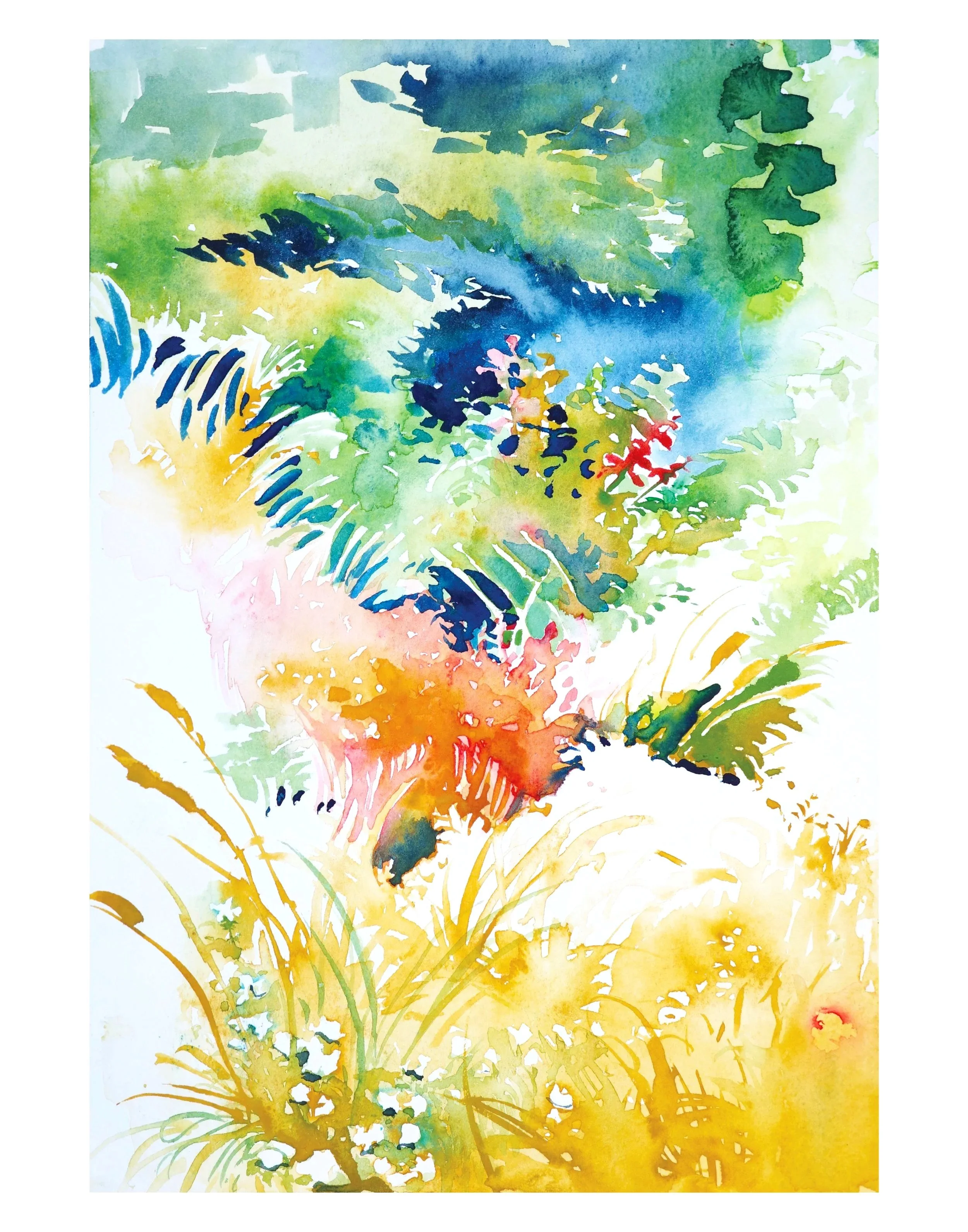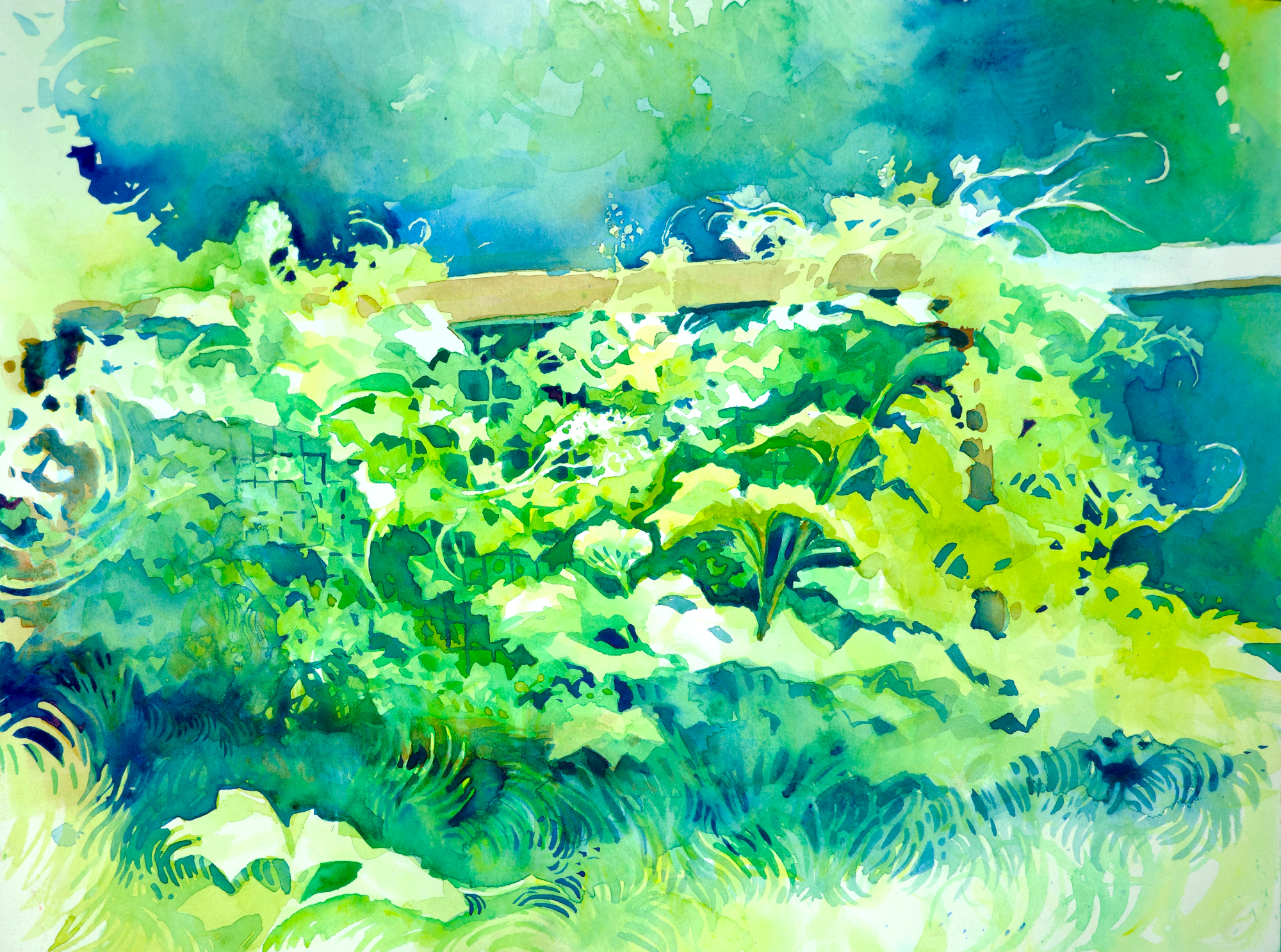 The majority of my work consists of plein air watercolor paintings that are done on location. I love to focus on tangled patches of grass and trees more than grand mountain landscapes. I'm very interested in studying small details and the way leaves, vines, and branches intermingle with one another. My oil work however is done primarily in the studio where I use what I have learned in my plein airs to help me create oil landscapes. I also paint a lot of figures and portraits with oil. I have another portfolio on my website dedicated to my live figure drawing work, which is a huge passion of mine and influences all of my art. I use those figure drawing studies as well as my own photography to work from and create figure oil paintings. My figure paintings are done in mostly reds and pinks and have a contextual focus on hyper femininity.